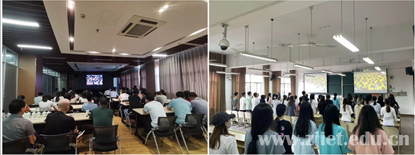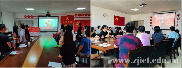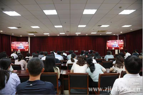上午八点,庆祝大会正式开始。学校党政领导班子、全体党员干部、各二级学院党员师生分别在视频会议室、教师发展中心、各二级学院会议室集中收看大会实况。据统计,全校以总支为单位,共设立10个分会场,近700余名师生集中观看了这场盛会。
