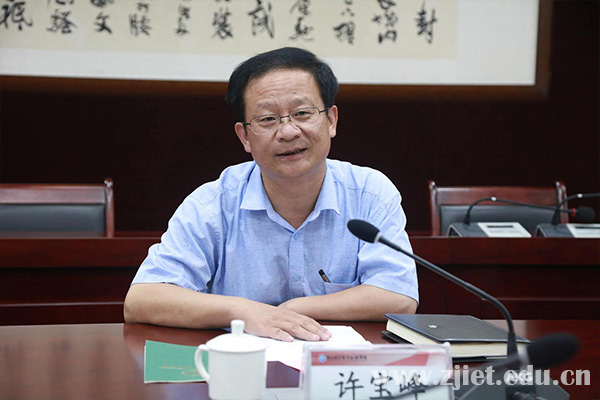 许宝峰代表学校对刘常委一行表示热烈欢迎,对长期以来,钱塘区在学校建设发展上提供的大力支持表示感谢,详细介绍了学校基本情况、办学成果和双方的合作基础。他表示,浙江经贸学院形成了以行业为依托、以学校为主体、以政府为推手、合作企业深度参与的“资源共享、互利共赢”合作办学体制,构建了产教融合的长效机制,在为钱塘区企业提供人才供给、技术支持和员工培训服务等方面具有一定的资源和平台优势。