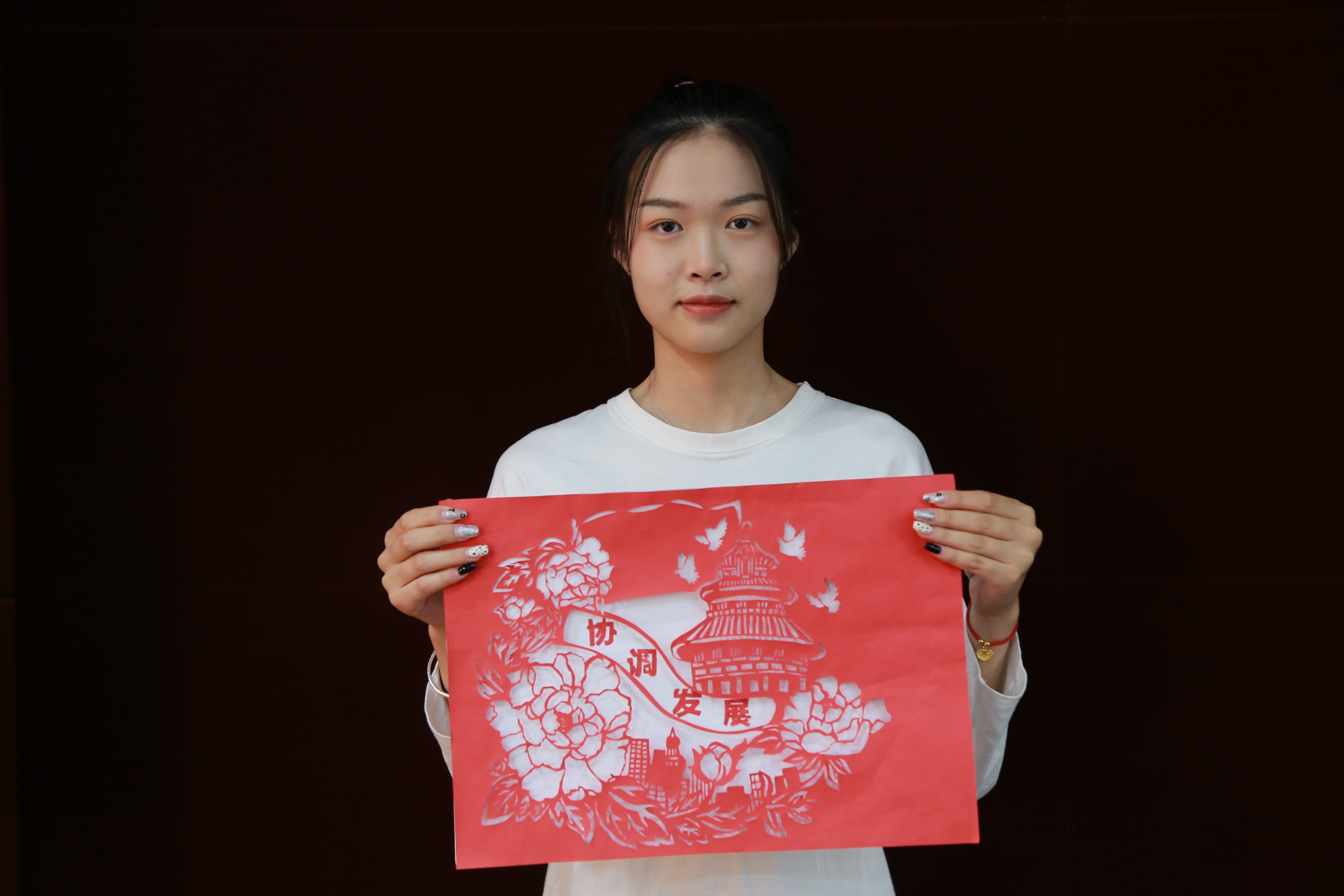 “贯彻新发展理念是新时代我国发展壮大的必由之路。”酒管212班学生董一丹表示,党的二十大报告中的这句话给她留下了深刻印象,她想通过剪纸作品勉励自己奋发学习,树立创新、协调、绿色、开放、共享的发展理念,为全面建设社会主义现代化国家贡献自身力量。