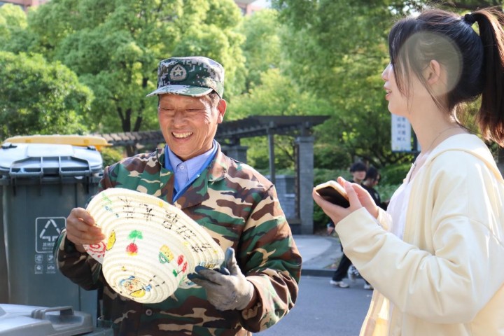 接下来的假日里,同学们将把这些手绘的草帽送给一线普通劳动者,他们在假期仍然在为校园安全坚守岗位、为道路交通保驾护航、为城市建设辛勤付出。