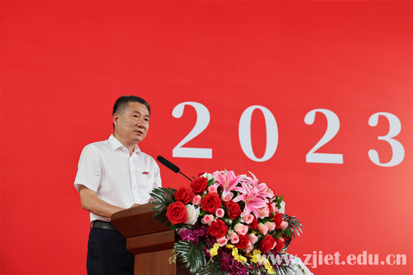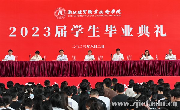 校长陈德泉向2023届全体毕业生致以热烈祝贺和美好祝愿,并以《坚持热爱 矢志奋斗——在奋力奔跑的青春赛道上点亮精彩人生》为题送上毕业临别寄语。他指出,“与时代共呼吸、与祖国同命运”是新时代经贸青年应有的担当。他希望全体毕业生永葆家国情怀,在坚定理想中把准青春航向;不畏艰难困苦,在矢志奋斗中成就非凡自我;保持乐观豁达,在热爱生活中点亮精彩人生,在时代大潮中扬帆起航,在人生旅途上奋翼高飞,谱写于国有功、于校有荣、于己有彩的动人乐章!